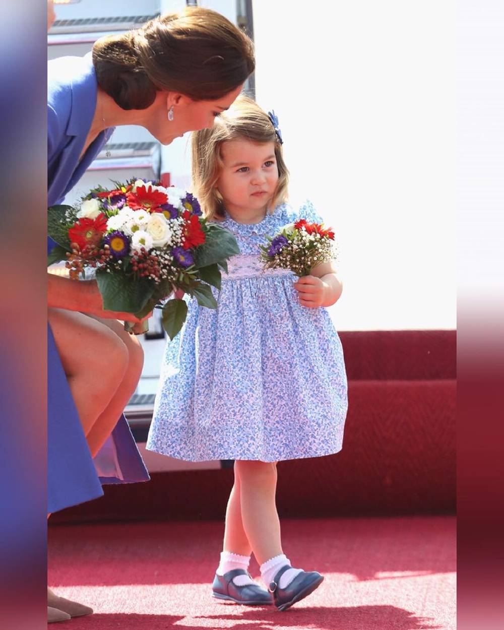 Para su corta edad, la princesa Charlotte demuestra carácter y personalidad, en comparación con su hermano el príncipe George no muestra miedo con los fotógrafos. Charlotte como una auténtica princesa saluda los fotógrafos y también es una niña muy fotogénica ante la lente de la cámara. En cambio George, es un poco más serio y tímido, cuyas expresiones no le quitan la ternura al pequeño príncipe.